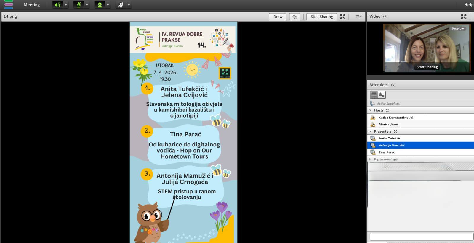 U okviru kontinuiranog stručnog usavršavanja koje organizira Udruga hrvatskih učitelja razredne nastave Zvono, 7. travnja održano je online predavanje u kojem su među ostalima predavačice bile i učiteljice Antonija Mamužić i Julija Crnogaća.